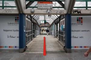 rovně přes mostík do „Luka Living“, kde po dvojích eskalátorech sjedete až dolů