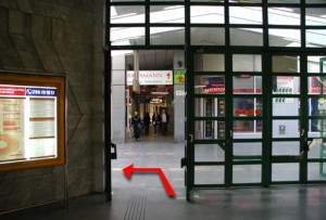 • sjeďte dolů po eskalátorech, a ještě jednou po eskalátorech dolů